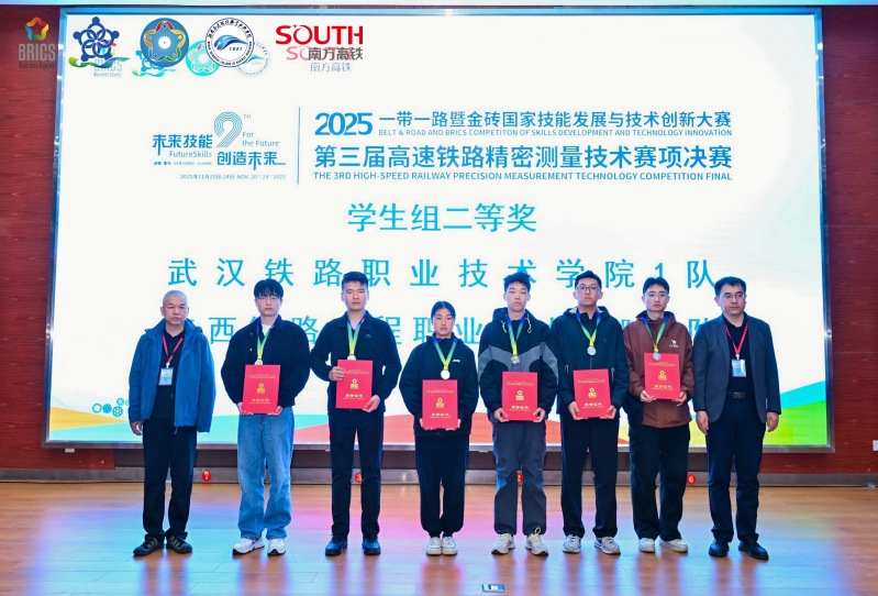 11月23日,2025一带一路暨金砖国家技能发展与技术创新大赛——第三届高速铁路精密测量技术赛项圆满落幕。我院派出两支学生队伍和一支教师队伍参赛,凭借扎实的专业技能和稳定的现场发挥,最终两支学生队伍荣获二等奖,教师队伍分别获三等奖和优秀指导教师,学校获优秀组织奖,展现了我校在该领域的综合实力。