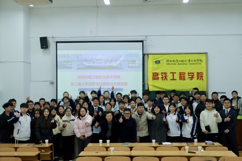 2025年12月4日下午,高铁学院在高新校区GB120举行2025年大学生职业生涯规划大赛院赛。学院党总支书记侯峰、院办主任王飞及学院辅导员担任评委,各班学生代表参与观摩。